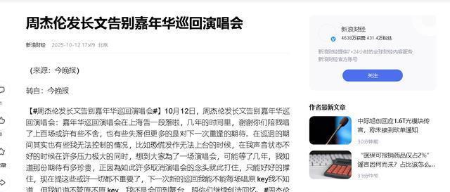 钱再多有什么用? 10日,华语乐坛“顶流”周杰伦一则告别“嘉年华”巡演的动态。 瞬间引发无数粉丝的热议,这场陪伴大家许久的巡演落下帷幕。